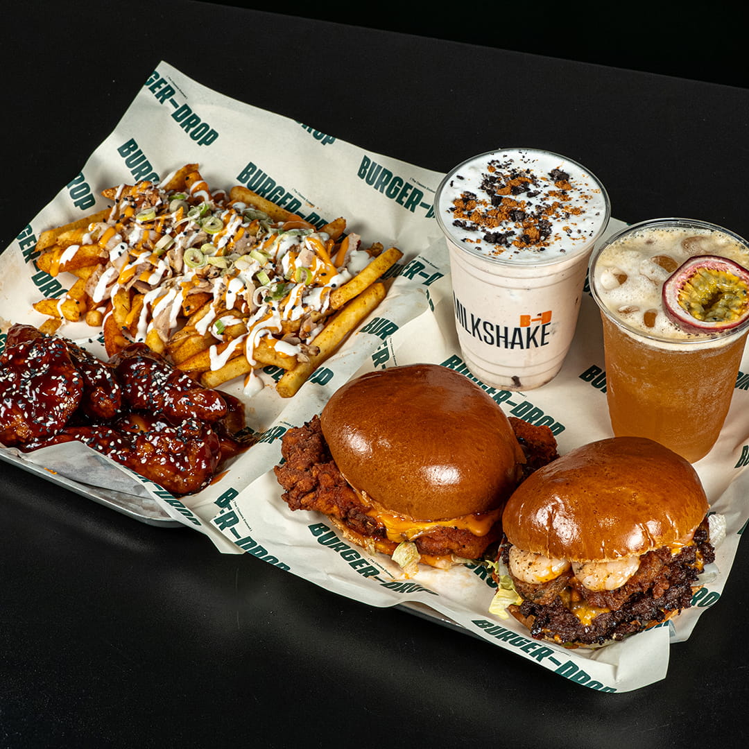 2 Burgers + Loaded Fres + 6 Wings or 4 Tenders + 2 Shakes/Mocktails/Soft Drinks